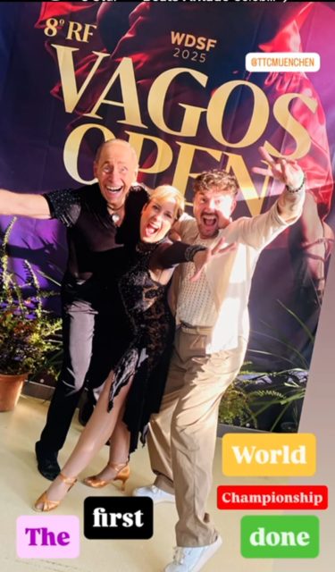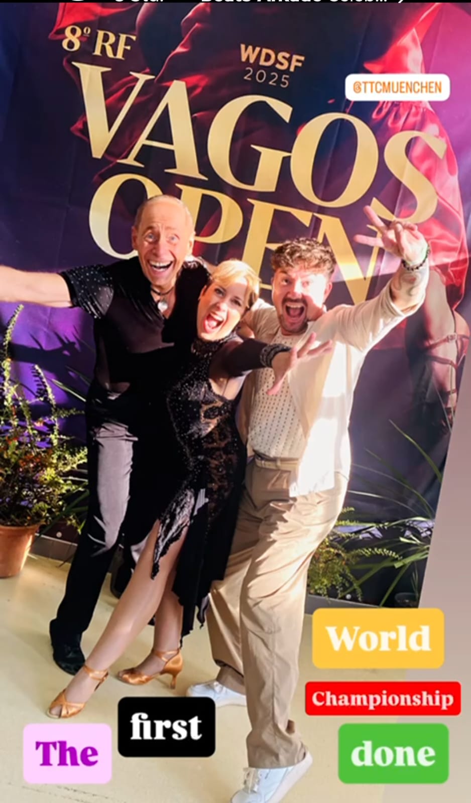 Santiago Calvo Plana und Anna Pershina haben auf der Weltmeisterschaft Senioren I Kombination den starken 7. Platz ertanzt. Die WM fand Ende September im portugiesischen Vagos statt. Bei der WM der Senioren II Latein erreichten außerdem Karsten Piekenbrok und Doris Bräunlich Platz 47.