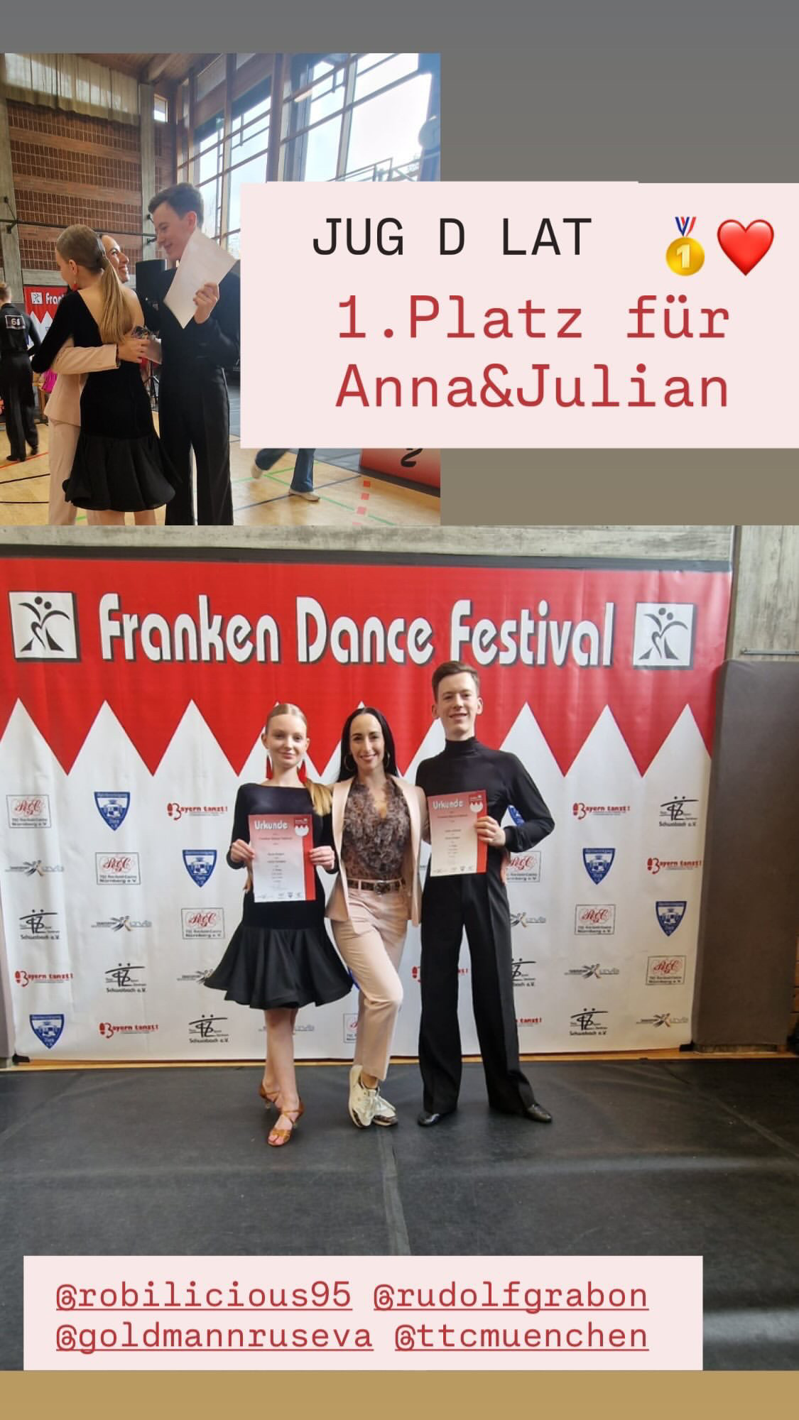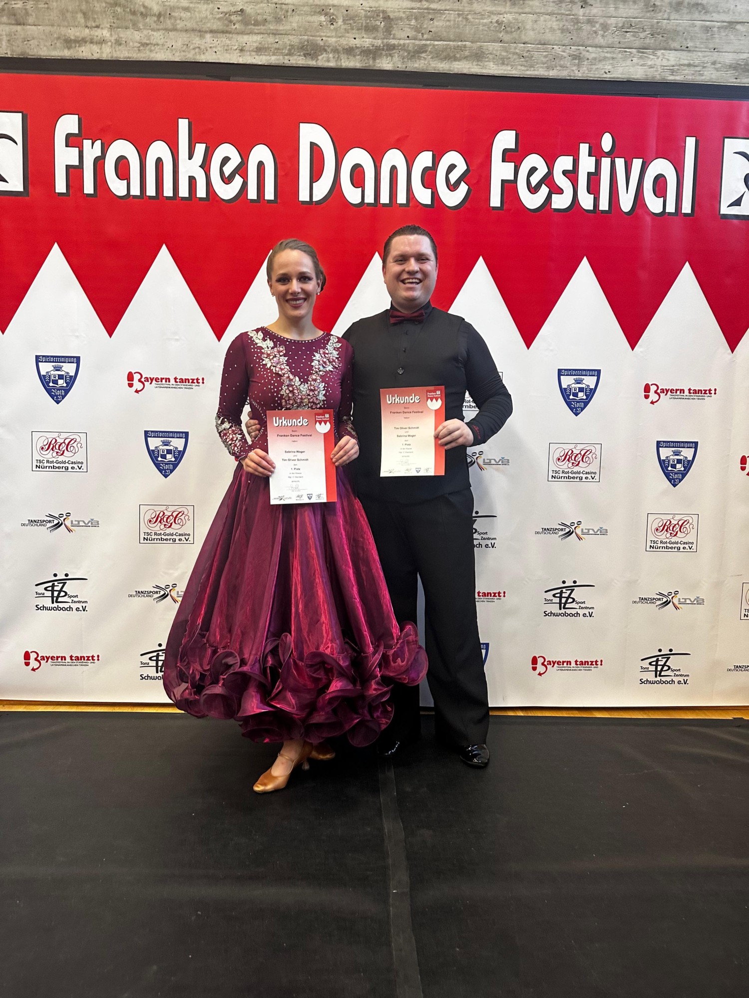 Am 25. und 26. Oktober 2025 fand in der Anton-Seitz-Halle in Roth das Franken Dance Festival statt, veranstaltet von Tanzsportzentrum Schwabach. Dieses Jahr konnte sich sowohl in Standard als auch in Latein jeweils ein TTC-Paar durchsetzen: Tim Oliver Schmidt und Sabrina Wager holten den Sieg in der Hauptgruppe C Standard. In Latein entschieden Julian Schmid und Anna Dolgov am Sonntag die Junioren II D Latein, am Samstag die Jugend D Latein für sich. Am jeweils anderen Tag erreichten sie Silber (Junioren II D Latein) und Bronze (Jugend D Latein).