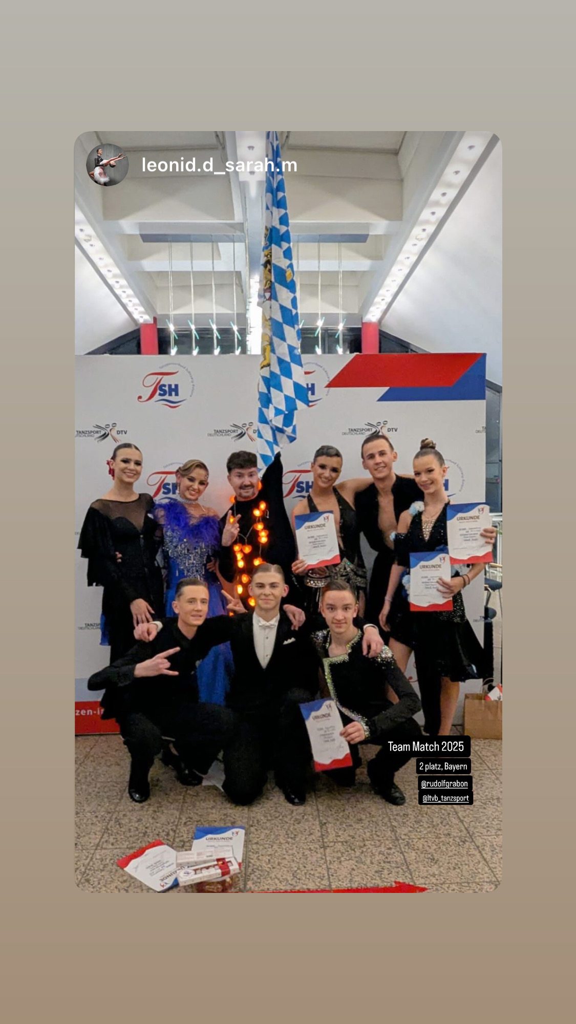 Ein tolles Ergebnis aus unserer Jugendabteilung: Leonid Danilov und Sarah Maxhuni haben beim großen Jugend-Tanzsportturnier, den Baltic Youth Open 2025 in Rendsburg, in der Klasse Junioren II B Standard Silber geholt. Insgesamt nahmen sie an diesem Turnierwochenende an sieben Wettbewerben teil – allesamt in der höchsten Junioren-Leistungsklasse, der B-Klasse. Leonid und Sarah gehören aufgrund ihres Alters der Altersklasse Junioren II an. Hier ist die B-Klasse die höchste Leistungsklasse. Auch in der nächsten Altersstufe – der Jugend – mischen Leonid und Sarah schon mit. Hier ist die Konkurrenz aufgrund des Altersunterschieds deutlich härter, aber Leonid und Sarah beweisen regelmäßig, dass sie auch hier schon mithalten können.