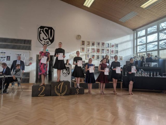 Auch die Solistinnen und Solisten haben im Jahr 2025 eine Bayernpokal-Turnierserie ausgetragen. Mit dabei waren vier fleißige Tänzerinnen vom TTC München. Allesamt zeigten sich beim Finale beim ESV Ingolstadt noch einmal in Topform. Eine von ihnen schaffte es sogar gleich zwei Mal aufs Treppchen: Ivanna Matyash holte Bronze in der Jugend D Latein und bei den Junioren II D Standard. Damit beschloss sie die Turnierserie in der Junioren-II-D-Standardklasse auf Platz 1 und durfte glücklich den Bayernpokal in Empfang nehmen. Herzlichen Glückwunsch!