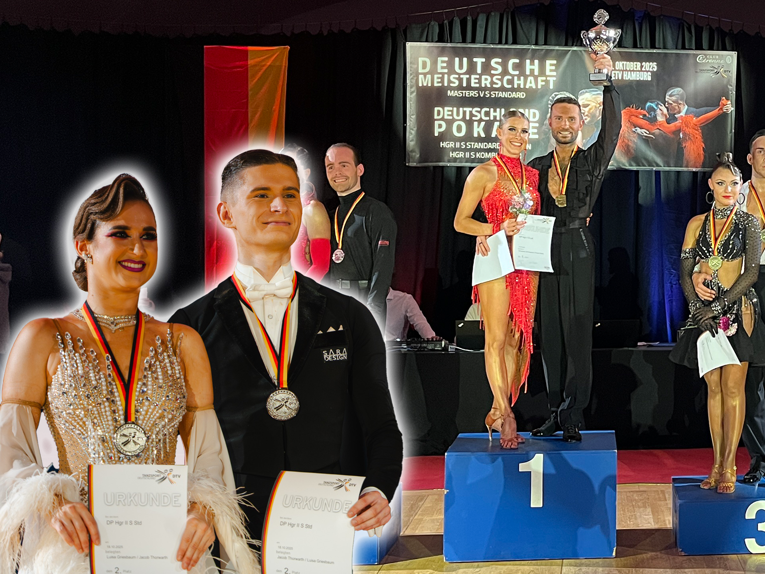 Falcon Keller und Christiane Schmeichel sind Deutschlandpokalsieger der Hauptgruppe II S Latein 2025. Jacob Thorwarth und Luisa Griesbaum holten sich Silber in der Standardkategorie.