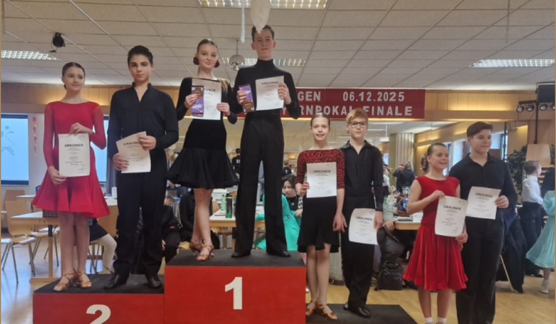 Beim Bayernpokalfinale U19 2025 in Erlangen haben Julian Schmid und Anna Dolgov abgeräumt: Zwei Siege in der Junioren II D und in der Jugend D Latein! Leonid Danilov und Sarah Maxhuni holten Silber und Bronze, Viacheslav Alex und Rusanna Lisa Hakobyan wurden ebenfalls 2.