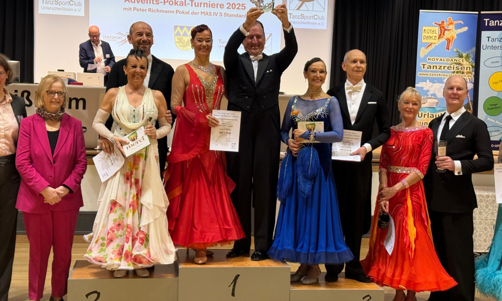 Gold, Silber und Bronze für den TTC München beim GSC-Nikolauspokal 2025: Alexander Schubert und Johanna Bienen siegten in der Hauptgruppe D Standard und holten Silber in der C-Klasse. Florian Fischer und Alla Svitlova holten bei ihrem ersten gemeinsamen Turnier auf Anhieb Bronze in der D-Klasse Standard.
